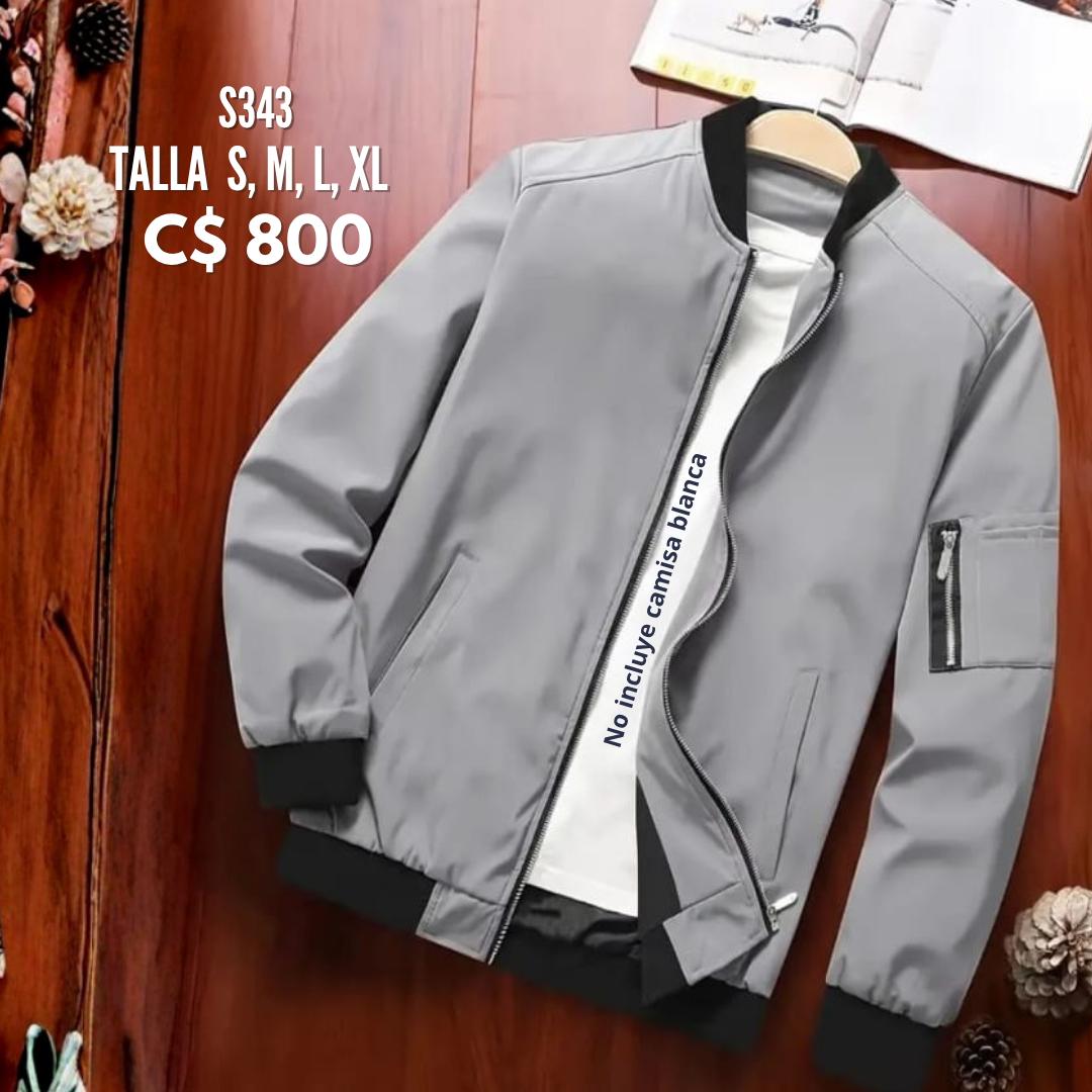Chaqueta color gris claro con ziper en brazo derecho–S343