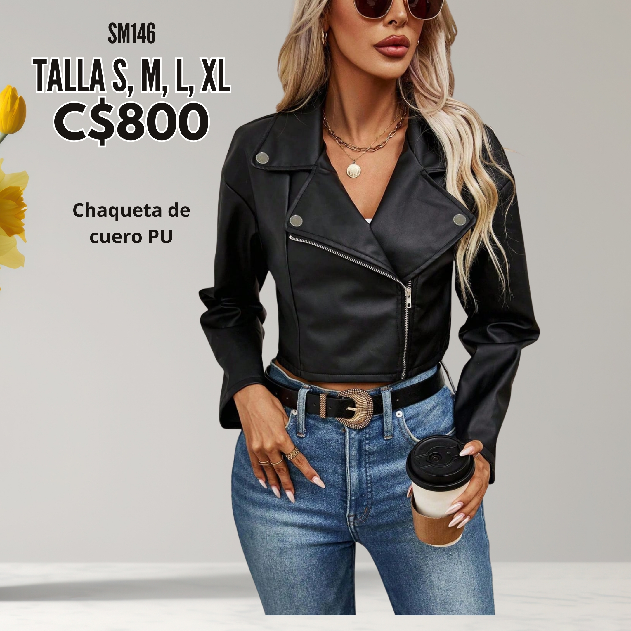 Chaqueta de cuero PU para damas –