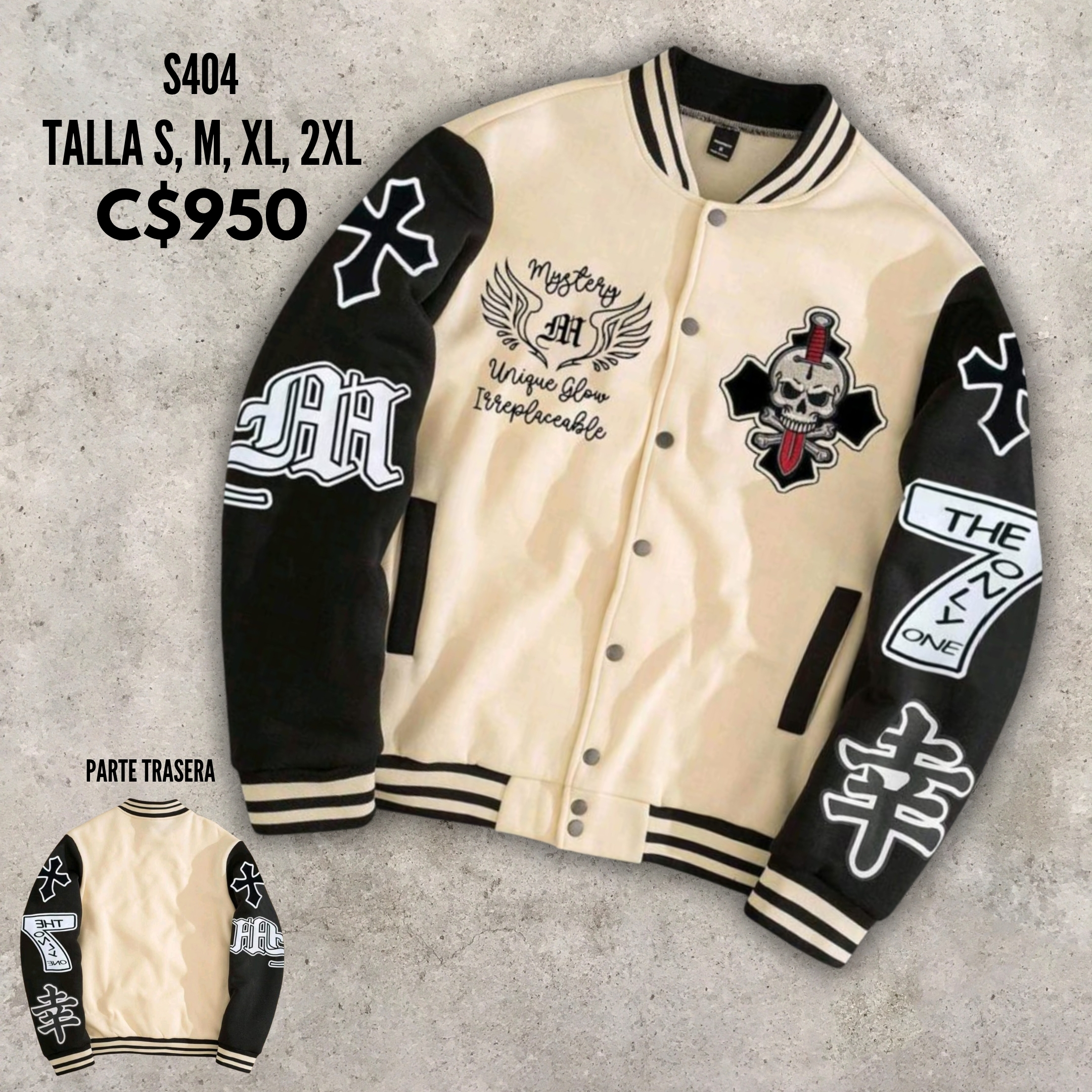 Chaqueta estilo universitario.–S404
