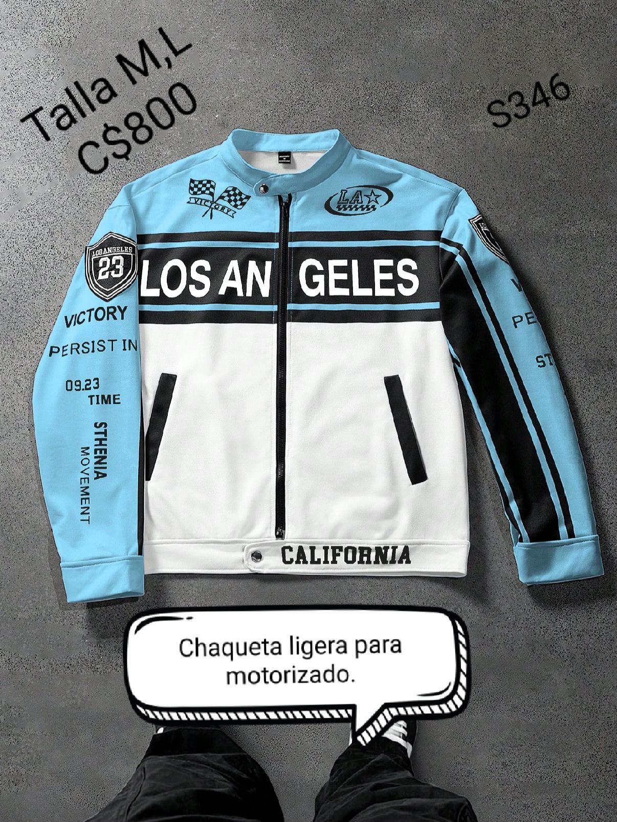 Chaqueta ligera para motorizado color blanco y celeste