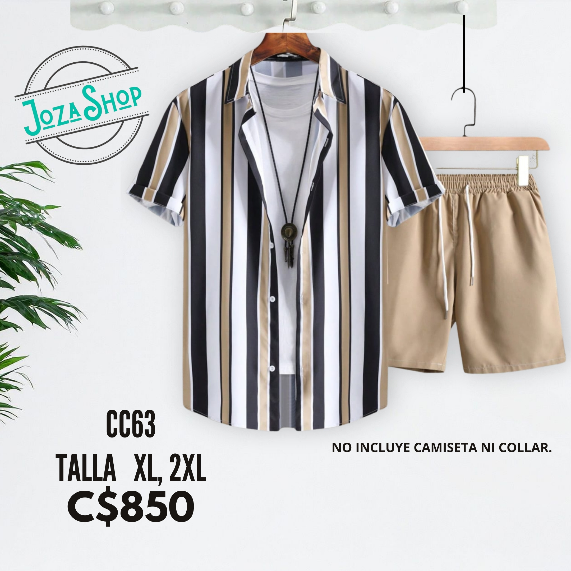 Conjunto de 2 piezas, camisa a rayas y shorts caqui