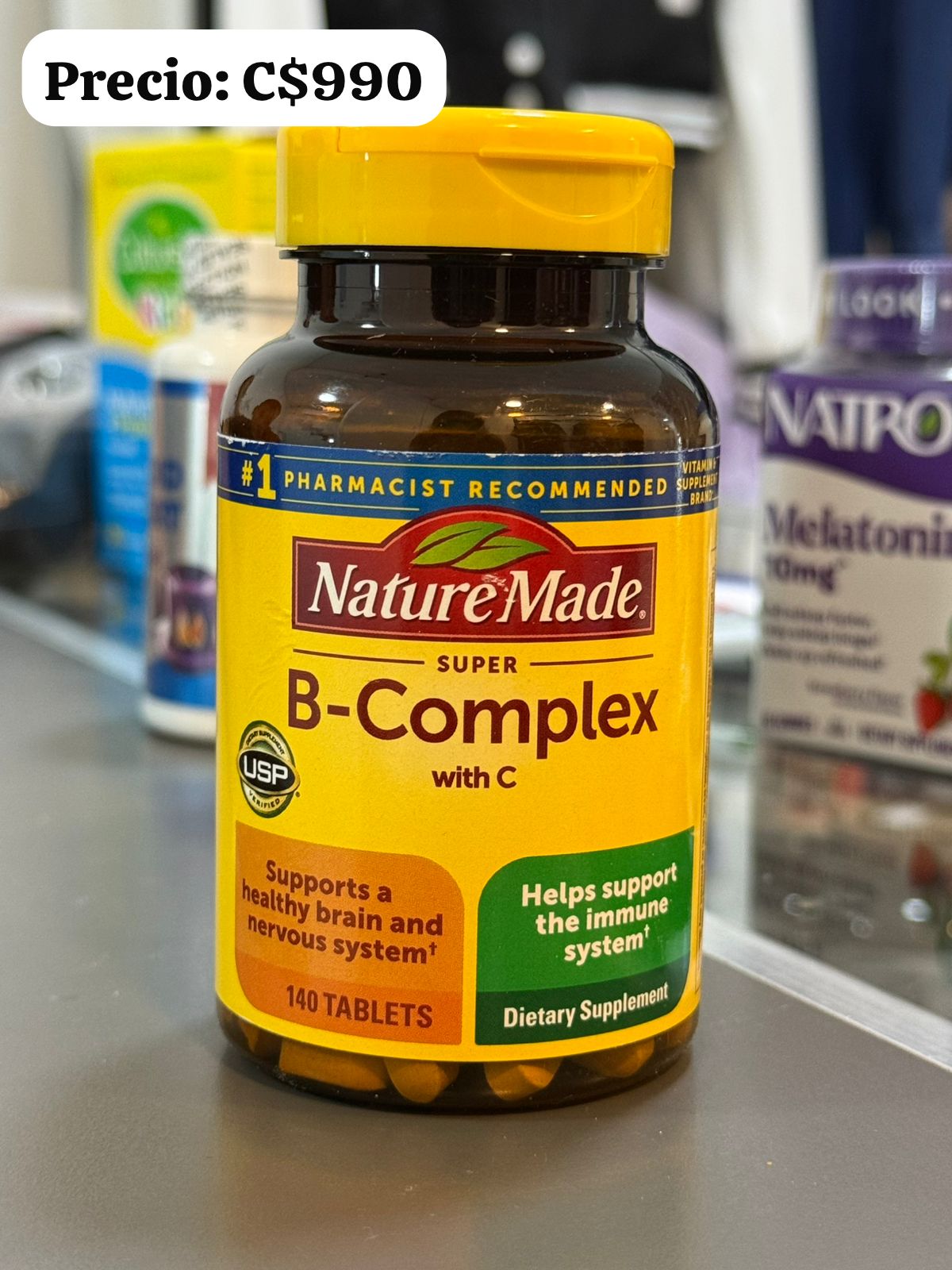 Super complejo B con vitamina C. 140 tabletas.